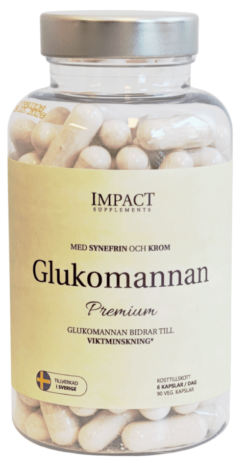 Glukomannan Premium är ett kosttillskott som kombinerar glukomannan, betaglukan, krom och synefrin för att bidra till viktminskning i samband med en energibegränsad kost.